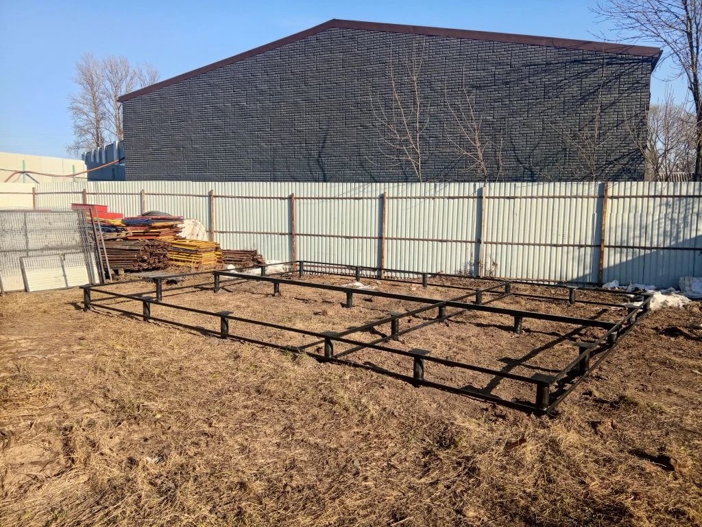 Кроме того, мы заранее позаботились об эстетическом виде и удобстве дальнейшего строительства. По всему внешнему периметру конструкции наши мастера выполнили обварку в два ряда профильной трубой размером 20 на 40 миллиметров. Такая обрешетка служит идеальным основанием для последующего монтажа цокольного сайдинга, избавляя владельца дома от необходимости проводить дополнительные сварочные работы в будущем.